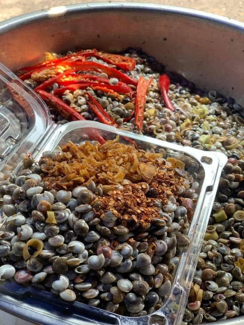 Ốc được luộc chín tới, khi có khách tới mua, chủ quán mới trộn thêm gia vị cho ngấm (Ảnh: Ốc lễ cô Hồng).