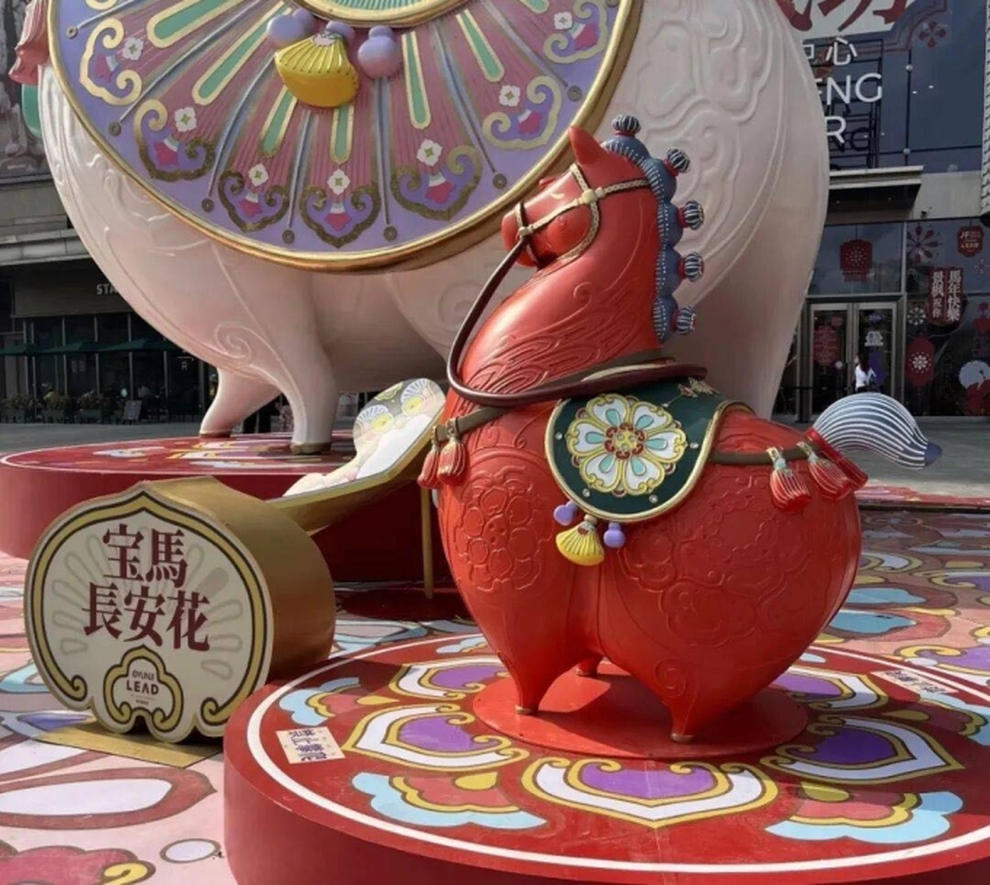 Mới đây, bức tượng linh vật ngựa được thiết kế với chiều cao 7,6m đặt ngoài trung tâm thương mại Cảnh Phong ở thành phố Nam Kinh, thu hút sự chú ý của dư luận Trung Quốc nhờ tạo hình độc đáo.