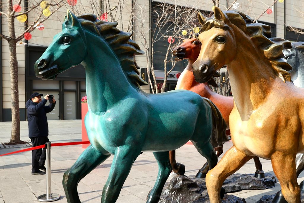 Ngay trong những ngày đầu năm nay, tại Vương Phủ Tỉnh - một trong những khu phố đi bộ thương mại sầm uất, xa hoa và lâu đời bậc nhất tại trung tâm thủ đô Bắc Kinh - tác phẩm "Bát tuấn Vương Phủ" (tạm dịch: 8 chú ngựa Vương Phủ) do nghệ nhân nổi tiếng Chu Bỉnh Nhân tạo dựng, thu hút đông đảo khách tham quan.