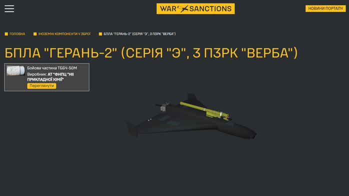 Hình mô phỏng máy bay không người lái Geran-2 (series E) trang bị tên lửa phòng không vác vai Verba và đầu đạn nhiệt áp. Ảnh: War&Sanctions