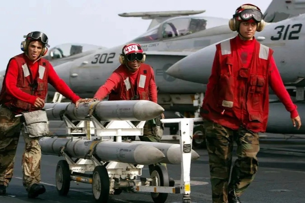 Tên lửa AIM-120 AMRAAM trên boong tàu USS Kitty Hawk của Mỹ (Ảnh: Reuters).
