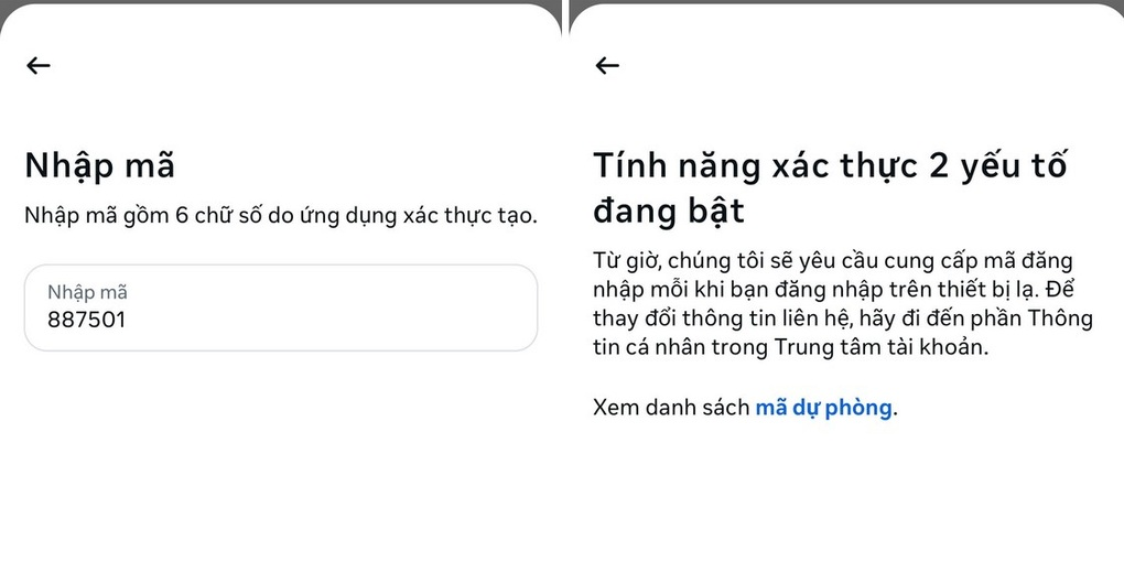 Nếu nhập mã OTP chính xác, bạn sẽ nhận được thông báo “Tính năng xác thực 2 yếu tố đang bật”. Bây giờ, tài khoản Instagram của bạn đã được bảo vệ bởi lớp mật khẩu thứ 2 (được sinh ra ngẫu nhiên trên ứng dụng Google Authenticator), giúp ngăn chặn tin tặc xâm nhập và chiếm đoạt tài khoản ngay cả khi mật khẩu đã bị lộ.