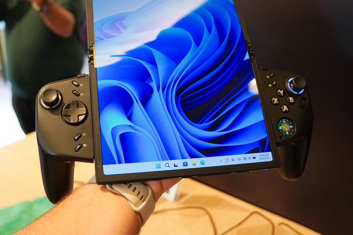 Khi kết hợp với tay cầm chơi game, thiết bị có cách hoạt động giống như những chiếc Nintendo Switch. Lúc này, người dùng có thể sử dụng toàn bộ màn hình, hoặc gập lại để dùng một nửa màn hình.