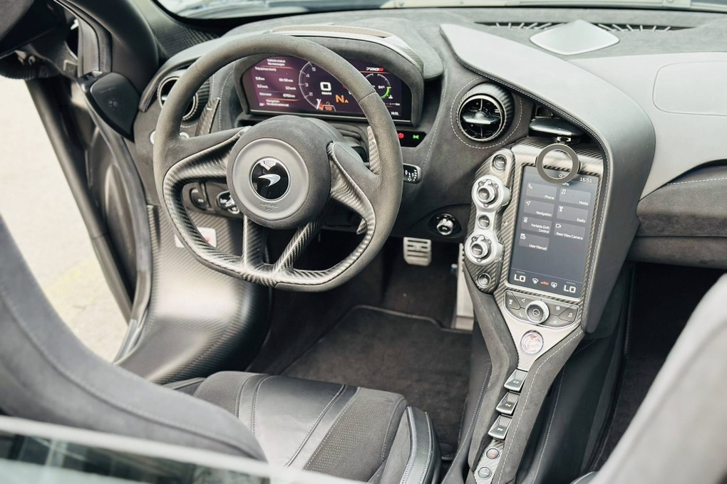 Về trang bị, chiếc McLaren 720S Spider 2021 này sở hữu gói ngoại thất Performance với nhiều chi tiết làm từ sợi carbon siêu nhẹ. Nội thất tập trung vào trải nghiệm lái xe với ghế da chỉnh điện có nhớ vị trí, màn hình trung tâm có hỗ trợ kết nối Apple CarPlay, đi kèm hệ thống âm thanh Bowers & Wilkins.