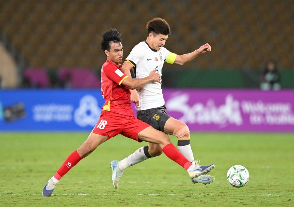 Công Phương tranh bóng với Liu Haofan (Ảnh: AFC).